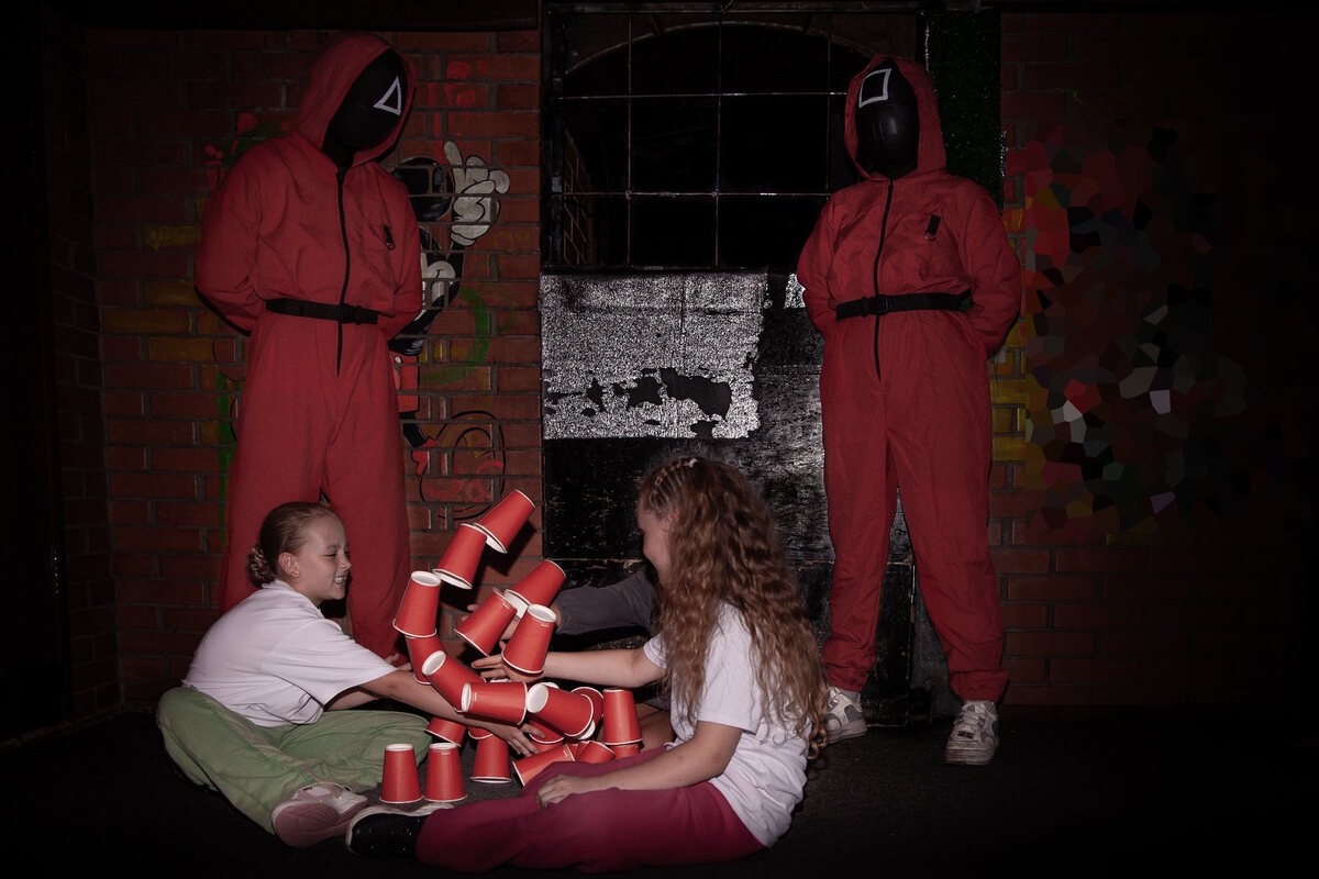 В течение часа участники сыграют в несколько игр вместе с персонажем из сериала. Командные, индивидуальные задания, музыкальное сопровождение и реквизит погрузят участников в напряженную атмосферу.